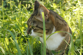 нюхает каждую травинку