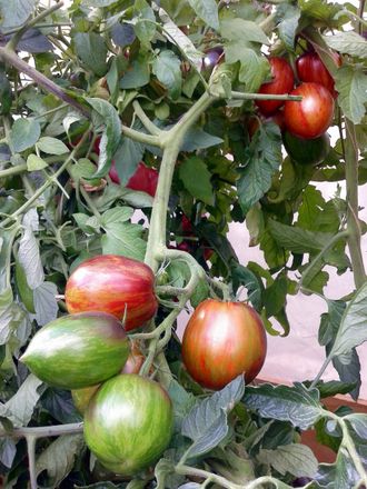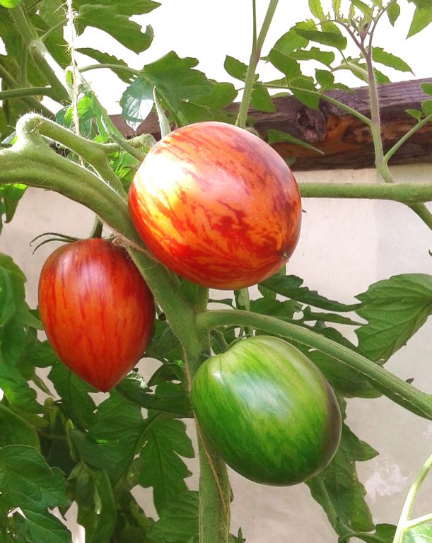 - Высокорослый индет, 1,5 - 1,8 м, среднеспелый сорт томатов. Плотные, красивые с узорами , вкусные сливы.