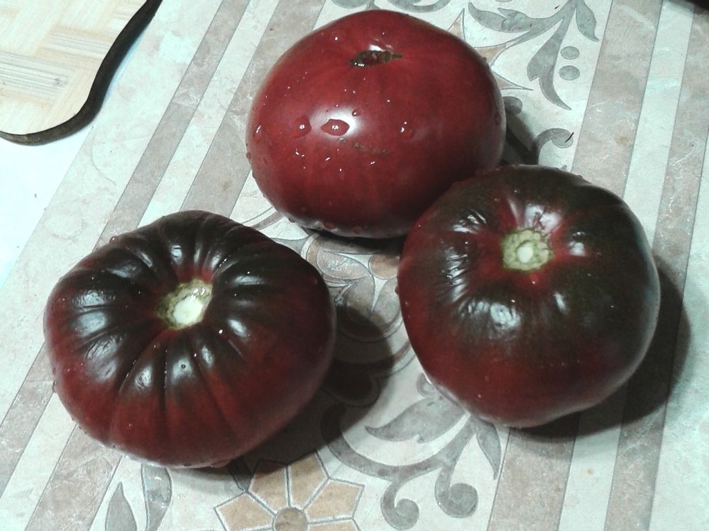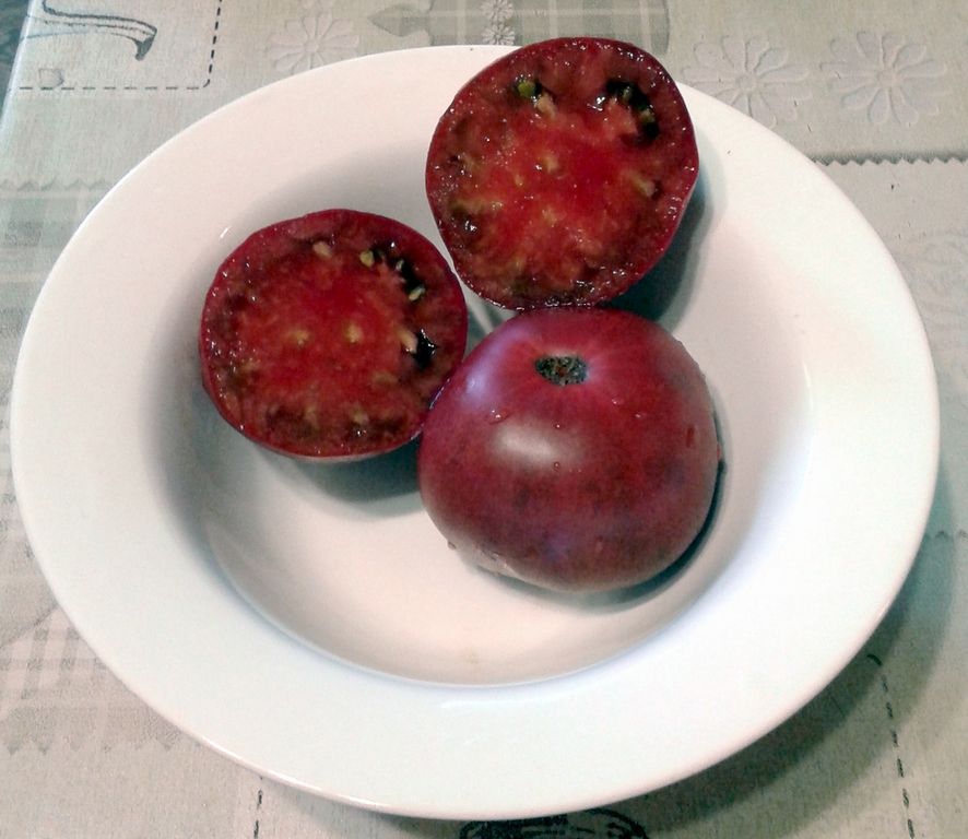 - Индет, высокорослый 1,5-1,8 м, с картофельными листьями, среднего срока созревания. Красивые , вкусные плоды темно-вишневого цвета.