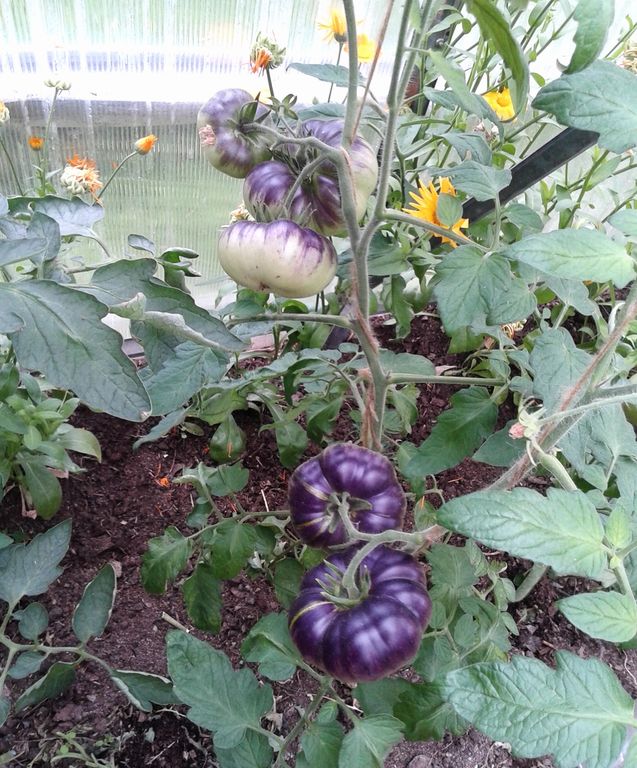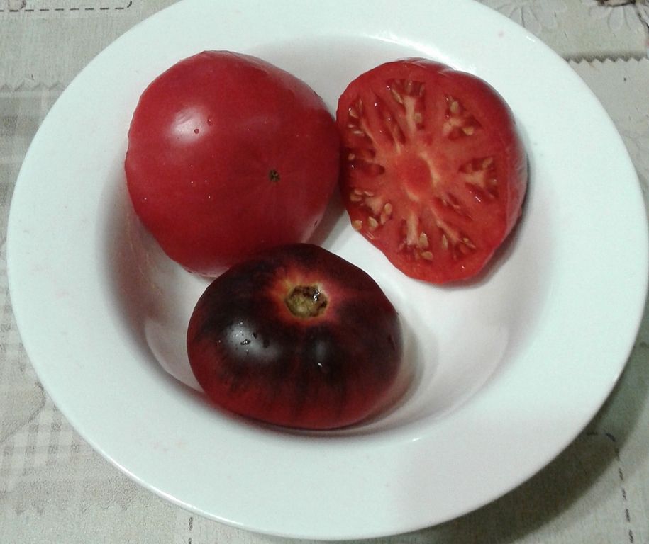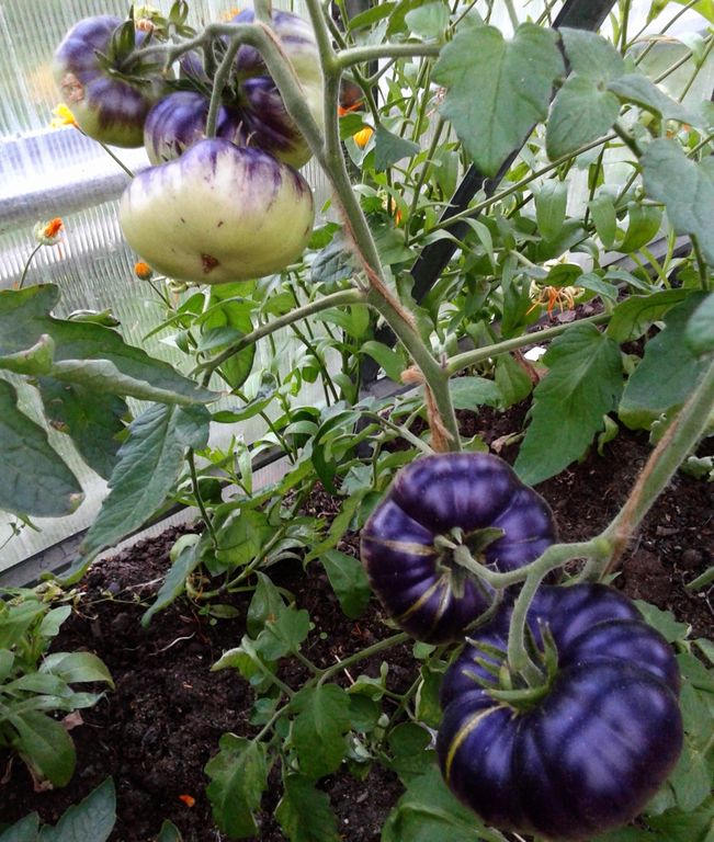 - Индет, высокорослый, 1,8 м, раннеспелый. Плоды- малиновые сладкие бифы с антоциановыми плечиками.