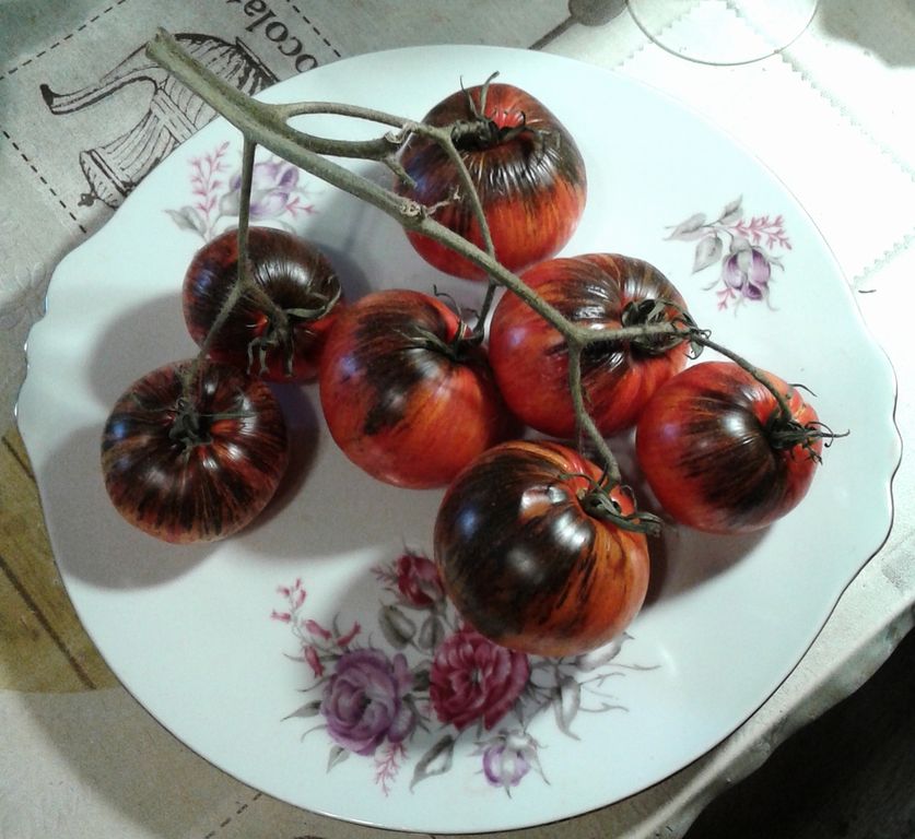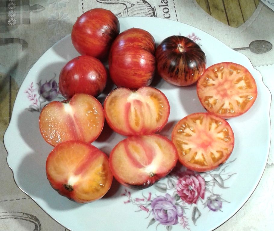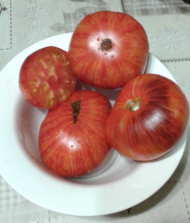 - Индет, высокорослый, до 2 м, среднеспелый сорт с красивыми плодами биколорами.
