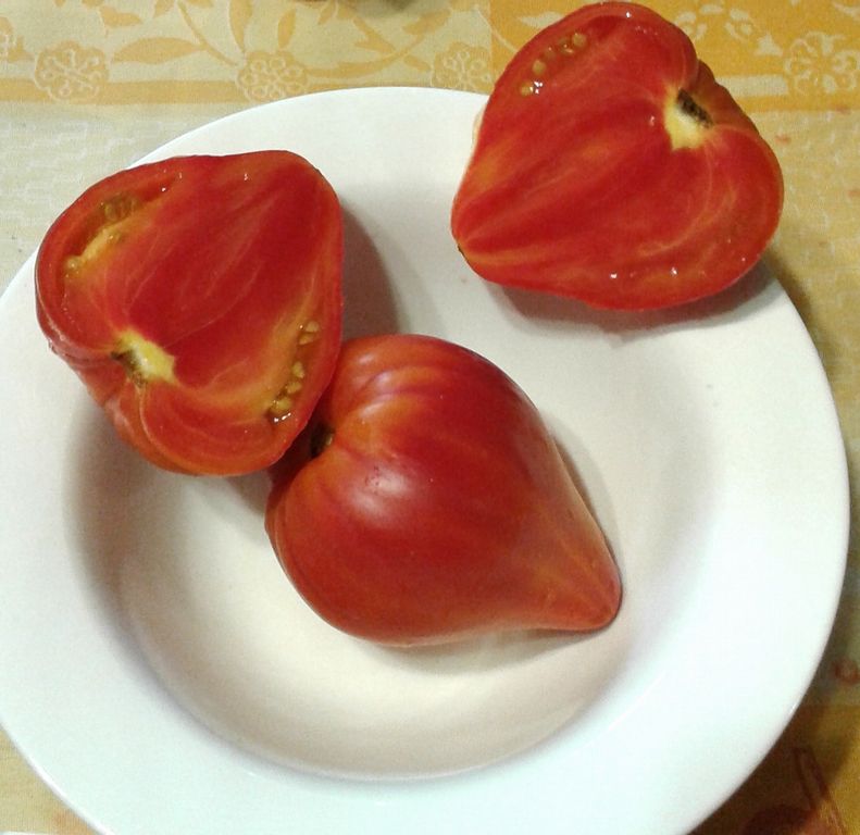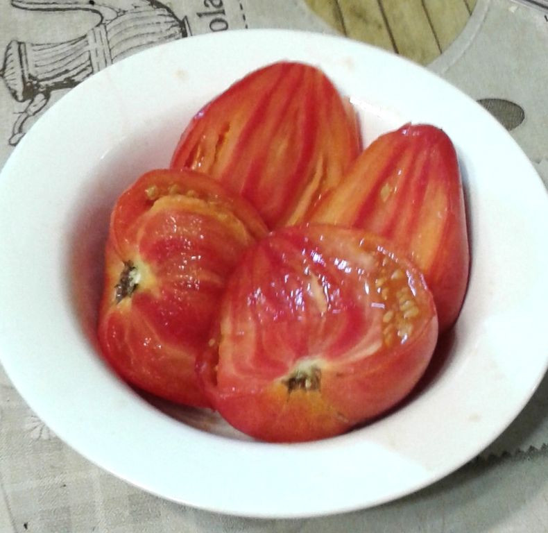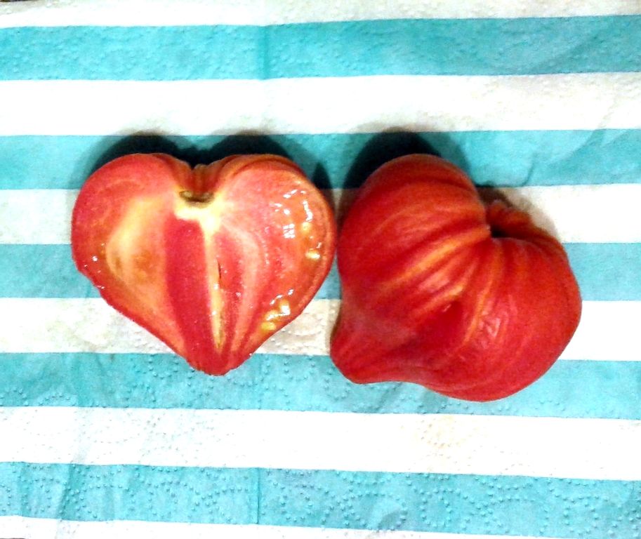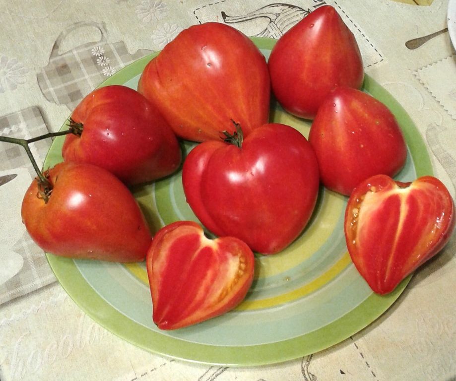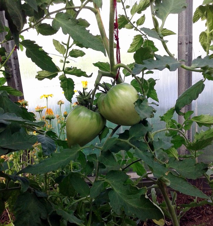 - Индет, высокорослый 1,8 м, с красивыми плодами биколорами, среднего срока созревания.