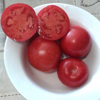 Семена томата Трапезица (Болгария)- сорт среднеранний. Детерминант, в открытом грунте достигает высоты 70–80 см, в теплице – 100–110 см. Плоды выровненные, округлые, некоторые с небольшим “носиком”, красные, мясистые. Масса 180–200 г. Мякоть плотная, но сочная, сладкая, ароматная, отличного вкуса. Сорт отличается длительным плодоношением; очень урожайный, кусты буквально увешаны плодами, которые отличаются хорошей лежкостью, при этом вкус плодов улучшается. Для потребления в свежем виде и засолки. (изначально из коллекции коллекционера Кузнецовой Н.В.)