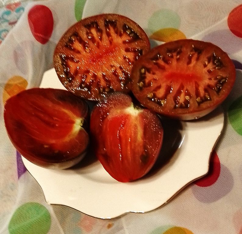 - Индет, высокорослый, до 1,6 м. Бордовые, сердцеобразные, вкусные плоды.