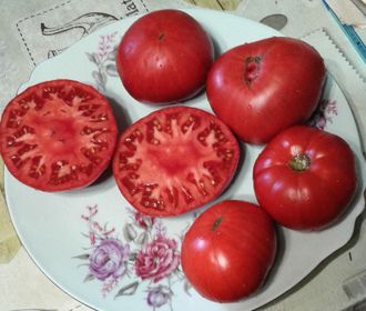 - Индет, высотой 1,6-1,8м, среднеспелый. Урожайный, красные вкусные плоды типа бифштекс.