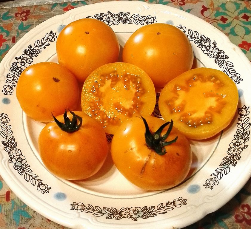 - Индет, высотой до 1,8 м, среднеспелый, оранжевые с пятнами антоциана вкусные плоды.