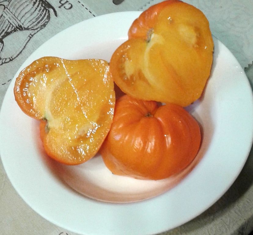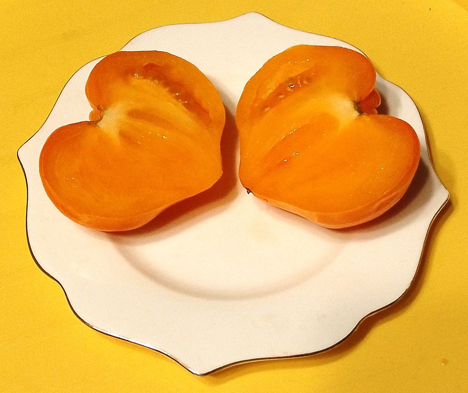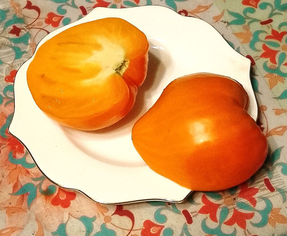 - Индет, высокорослый, 1,8-2,0 м, среднеспелый сладкий сорт, желто-оранжевые сердцевидные плоды.