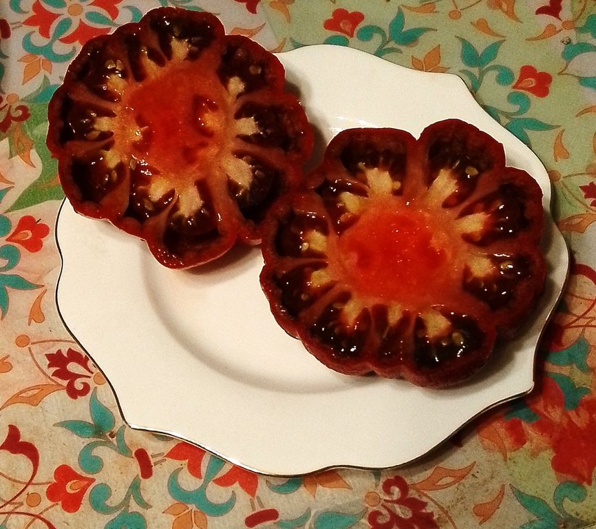 - Индет, высокорослый, среднеспелый, вкусные плоды экзотической формы и окраски.