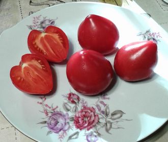 Сорт среднеспелый, низкорослый - 0,6 м в открытом грунте, куст компактный, штамбовый, детерминант. Лист обычный морщинистый. Плоды красивые, сердцеобразные, выровненные, темно-розовые, массой 60-120 грамм. Вкус сбалансированный, томатный, мякоть мясистая, сочная, в меру плотная. Неприхотлив и устойчив к заболеваниям томата. Урожайность хорошая, отзывчив на подкормки. Применение: для свежего потребления, салаты, соусы и для консервирования.
