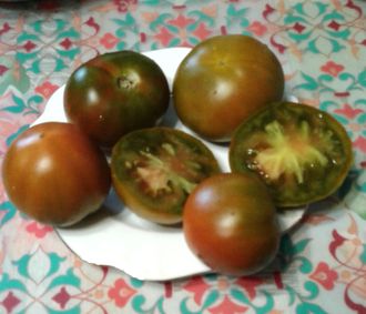 - Индет, в теплице до 1,4 - 1,8 м, среднеранний. Плоды округлые, цвет охристо-терракотовый, отличного вкуса.