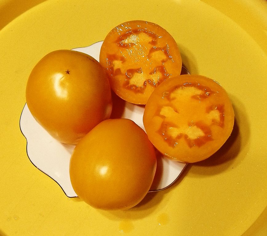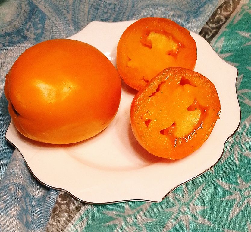 - Индет, среднеспелый, высотой до 1,6 м в теплице. Плоды округло-овальные, мясистые, оранжевые, отличного вкуса.