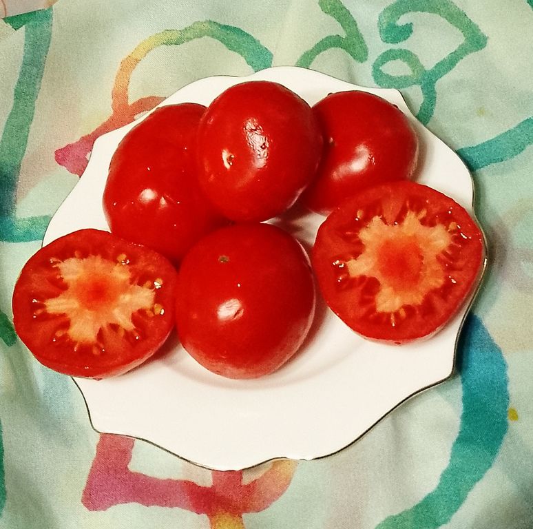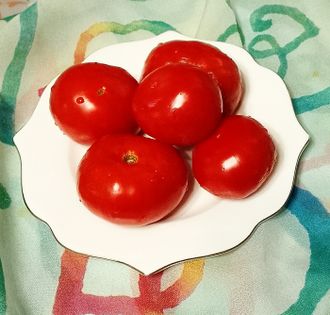 - Дет, среднеранний, высотой до 1 м в теплице. Плоды красные, плоскоокруглые, отличного вкуса.