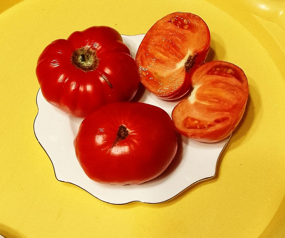 Семена томата Rosii de Letea (Помидоры Летеи, Росси де Летеа), Румыния - Семейный сорт из Румынии. Индет. Сорт среднеспелый. Куст крепкий, высотой 1,8 м, листья обыкновенного типа, можно выращивать в 2 стебля. Плодоношение до заморозков. Плоды привлекательные, типа бифштекс, красные, плоскоокруглые, слегка присборенные у плодоножки, мясистые. Плоды массой 150–450 г. Мякоть красная, очень сочная, сладкая, с приятным ароматом и вкусом. Сорт урожайный. Для потребления в свежем виде, в салатах и приготовления соков, соусов.