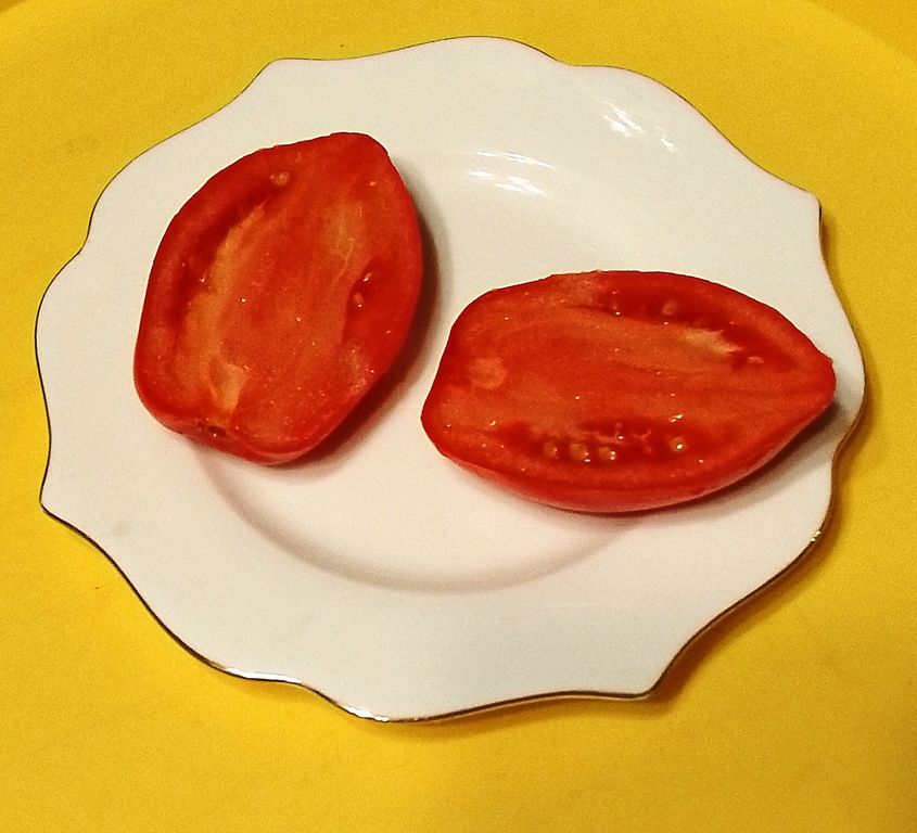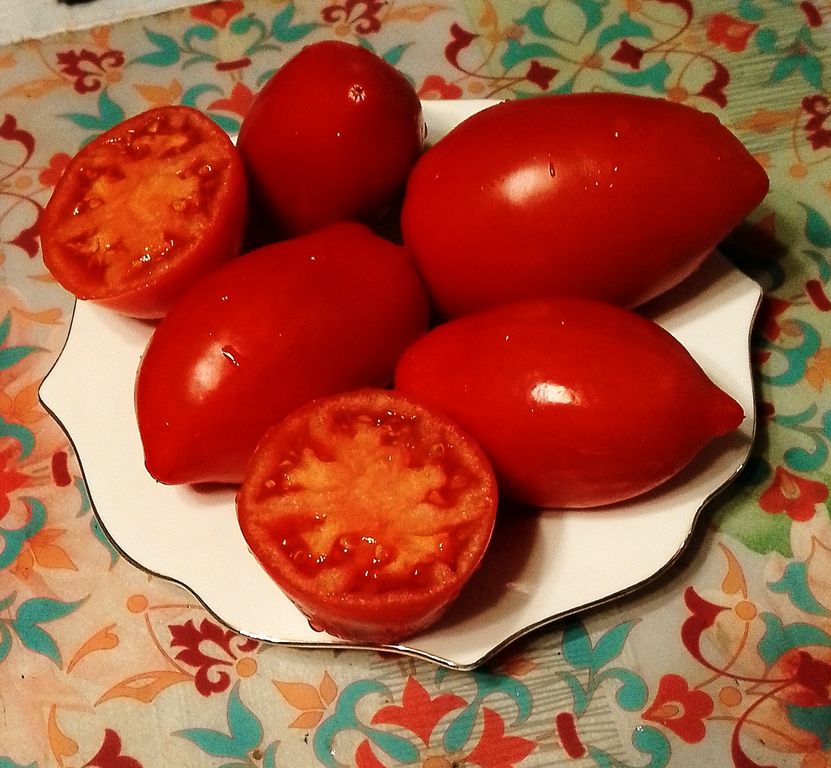 - Индет, высотой 1,8 м, среднеспелый. Красные, удлиненные, вкусные сливки, в среднем 100 г.