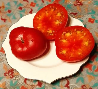 - Индет, высокорослый, до 1,8 м. Плоды биколоры, плоскоокруглые, сочные, сладкие.